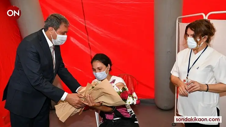 Toplu Taşıma Merkezinde kurulan ve vatandaşların randevusuz bir şekilde aşı yaptırabildiği çadırda, Melek Sarıarmut’a 1 milyonuncu aşı yapıldı. Salgında en güçlü silah olan aşılama oranının yükseltilmesi için çalışmaların devam ettiğini belirten Vali Şıldak, "Koronavirüsle mücadelede Balıkesir’de bir taraftan tedbirlerin uygulanması konusunda hassasiyet gösterilirken, diğer taraftan da en güçlü silah olan aşılama oranlarını yükseltmek konusunda büyük bir gayret içerisinde çalışıyoruz. Sağlık Müdürlüğümüzün bütün personeli bu konuda fedakarca uzun bir çalışma maratonu ortaya koydular. Şu an İl merkezinde bulunan aşı istasyonundayız. Burada oluşturulan çadırda randevusuz aşı uygulanıyor. Farklı İlçelerimizde 9 noktada aşı çadırı uygulamalarımız var. Aşılanma oranı olarak Balıkesir şu ana kadar yüksek bir performans gösterdi. İlk doz aşıda nüfusa oranla ülke genelinde 6. sırada, her iki doz aşı da ise 3. sıradayız. Vatandaşlarımızı gösterdikleri duyarlılık için tebrik ediyorum. Sonbahara rahat bir şekilde ulaşabilmek, yaz aylarını rahat geçirebilmek için aşılama oranını daha da yükseltmemiz gerekiyor. Bütün vatandaşlarımızı, bugünden itibaren 18 yaşa düşen bütün yaş gruplarını, meslek gruplarını bir an önce randevu alarak aşı merkezlerimize, aile hekimliklerimize ve hastanelerimize bekliyoruz’ diye konuştu.
