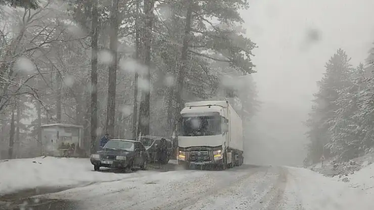 Kazdağları'nda aniden bastıran kar sürücülere zor anlar yaşattı